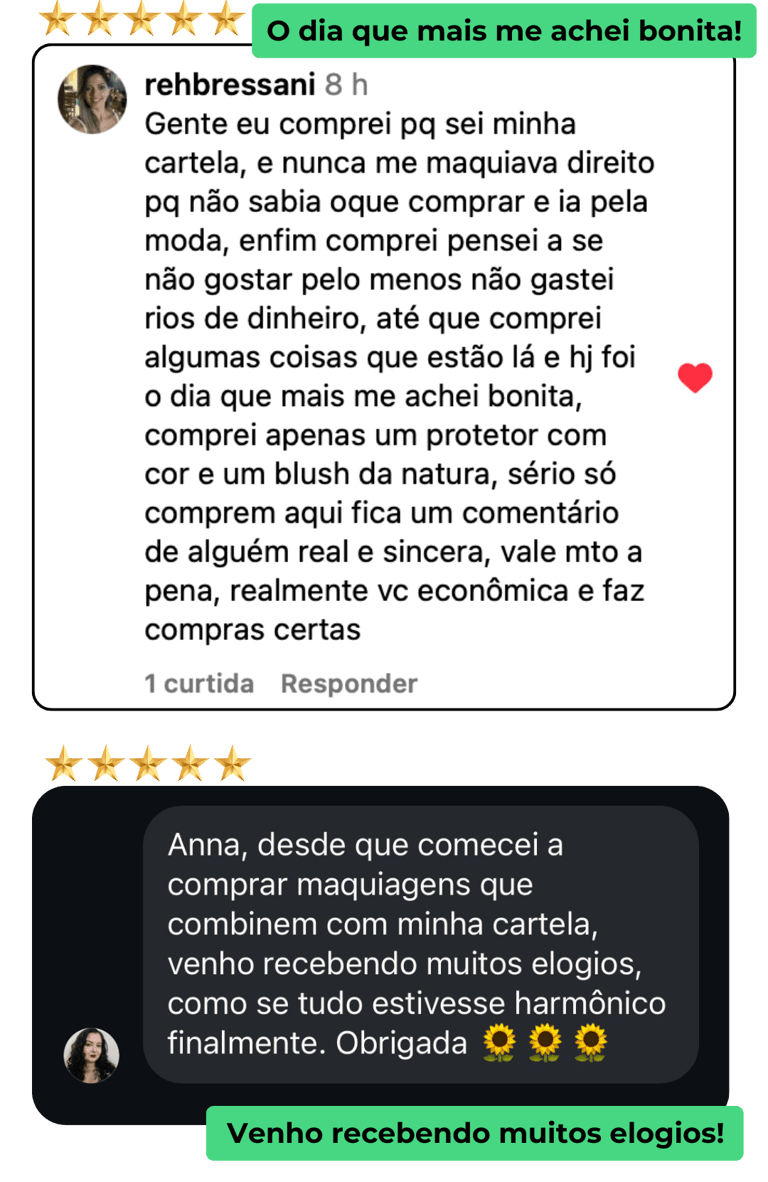 ➡️ quando você descobre exatamente quais produtos e cores foram feitos para a sua beleza natural.